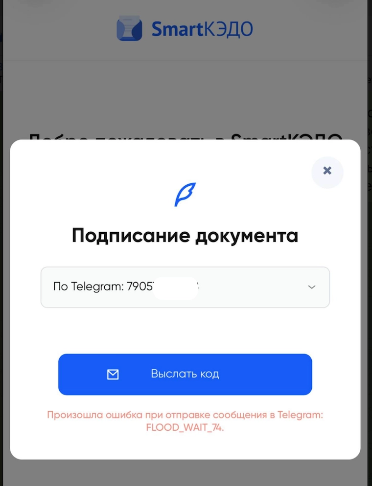 - Если вы запросили код для подписания на телеграмм и он пришел не сразу, то подождите несколько минут перед следующим запросом. Не делайте несколько попыток в моменте. Если же вы все-таки поторопились и получили следующую ошибку: