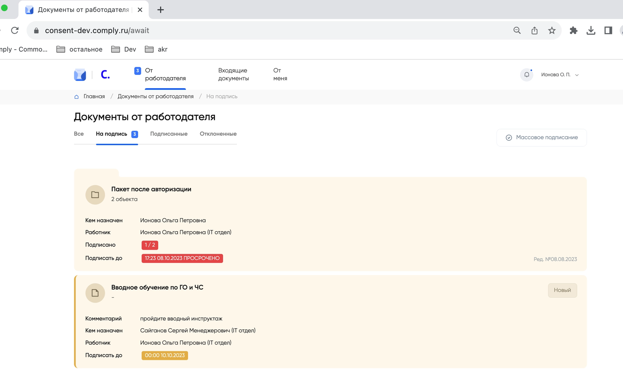 - Документы могут приходить как пакетом (несколько документов, одновременно назначенных), так и одиночно.