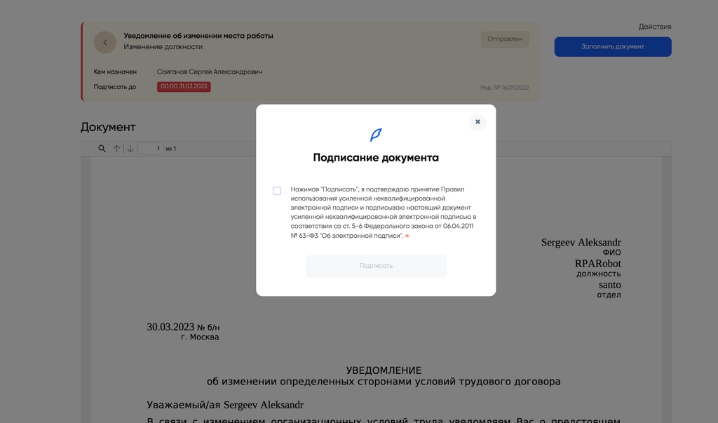 - Эта опция НЕ применима для подписания дополнительных соглашений со стороны работника. Дополнительные соглашения нужно открывать и подписывать отдельно каждое.