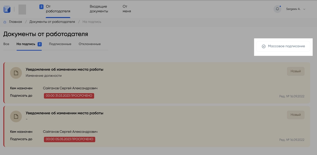 - Если вы хотите одновременно подписать несколько других документов, нажмите кнопку «Массовое подписание»