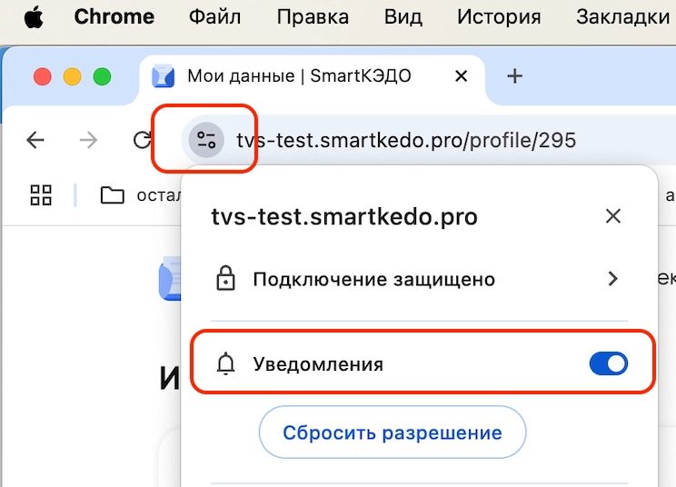 в настройках браузера должно быть разрешено получение уведомлений для этого сайта: